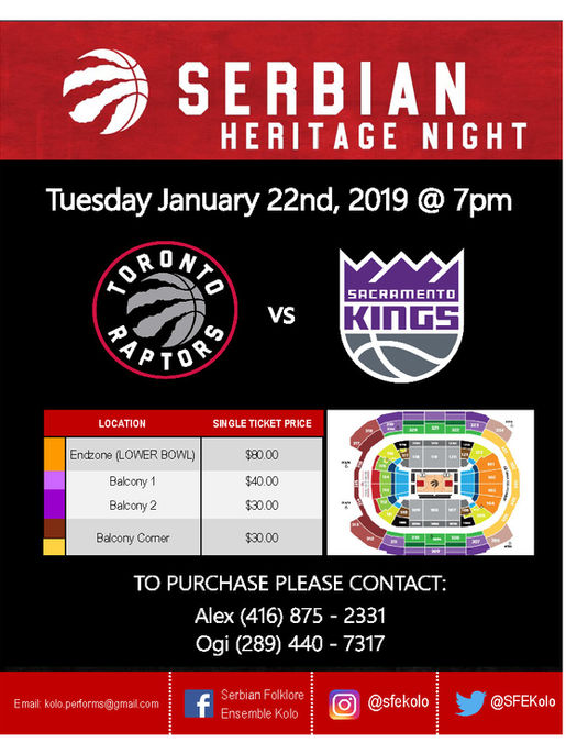 KOLO’s most recent achievement has been the participation with the Toronto Raptors /NBA during Serbian Heritage Night, where they have had the privilege to be the half-time show entertainment, over the last ten years. This opportunity has given KOLO an even bigger scale to showcase their talents and Serbian traditions through dance. The recorded performances on You Tube have exceeded 1.5 million combined views by people worldwide.